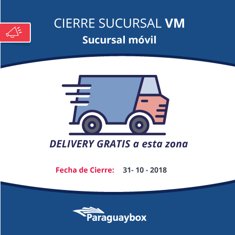 Cumplimos en informarle que a partir de la fecha 01-11-2018 la Sucursal del Centro (VM) situada en la dirección Roma -4ta- N° 618 e/ 15 de Agosto, pasará a formar parte de nuestras sucursales móviles, con envíos gratuitos en la zona a través de nuestro servicio Pybox Express.